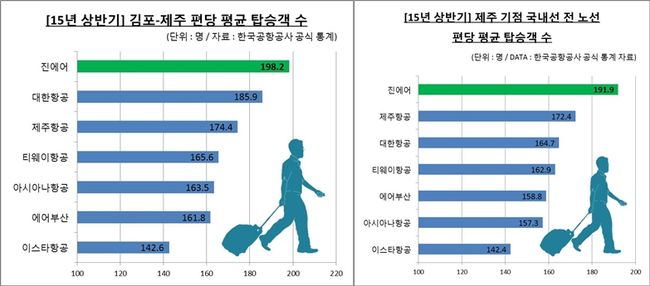 진에어는 이 노선에서 지난 2013년과 2014년에도 연간 여객 점유율 LCC 1위를 달성한 바 있어 지속적으로 국내 대표 노선의 LCC 선두 주자로 자리를 확고히 하고 있다.