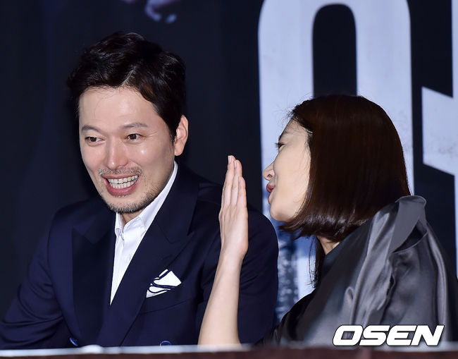 9일 오후 서울시 중구 동호로 그랜드 앰배서더호텔 그랜드 볼룸에서 열린 KBS 새 수목드라마 '어셈블리' 제작발표회서, 정재영과 송윤아가 귓속말을 나누고 있다.