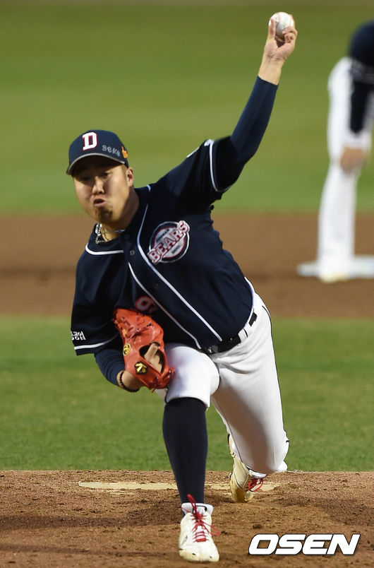 두산 에이스 유희관이 한화 타선에 혼쭐났다. 올 시즌 2경기 2승 평균자책점 0.60으로 초강세를 보였지만 이날은 집중 공략을 당했다.