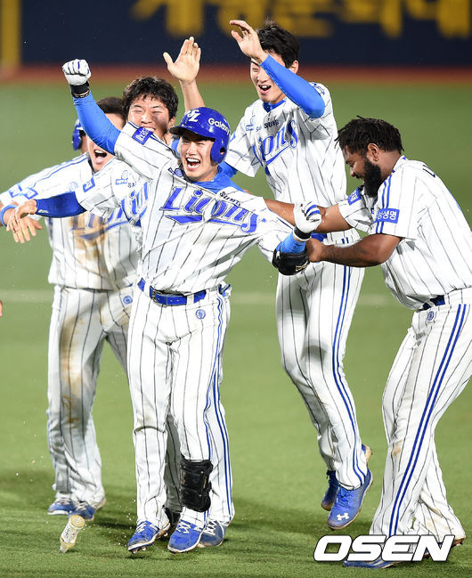 곧이어 이승엽의 고의 4구로 걸어나갔다. 타석에는 김재현. SK 네 번째 투수 문광은에게서 끝내기 안타를 빼앗으며 연장 혈투의 마침표를 찍었다.