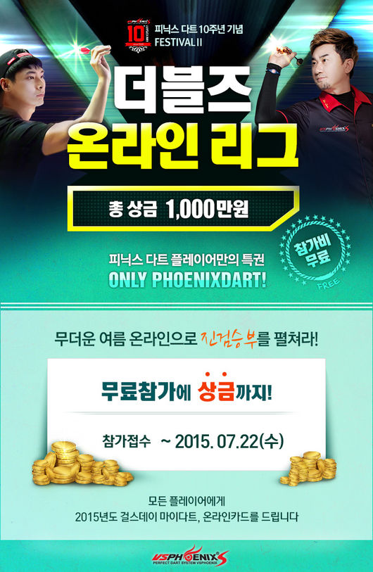'더블즈 온라인 리그'의 참가 신청은 이달 22일까지 피닉스다트 홈페이지(www.phoenixdart.com)를 통해 진행된다.