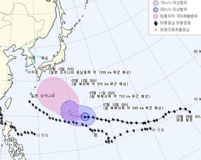 [OSEN=이슈팀] 11호 태풍 낭카가 먼 남쪽바다에서 북상중이다.