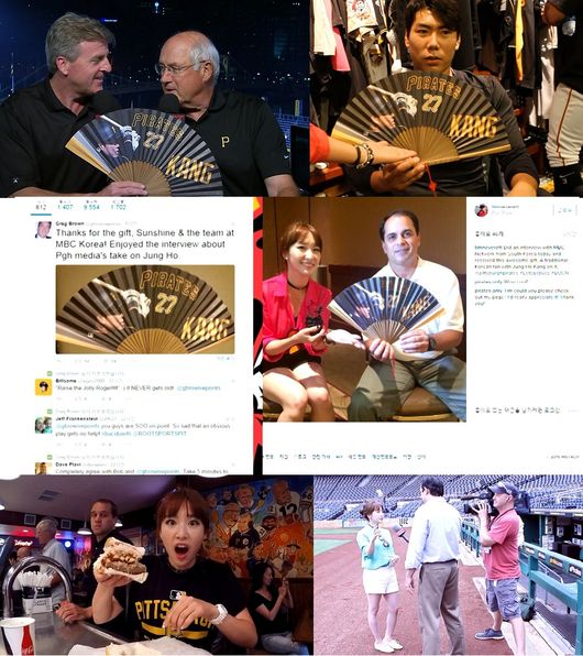 이날 현지 중계방송에서 강정호가 친구에게 선물 받은 한국과자와 부채가 자세히 소개되면서 '피츠버그 원정대'의 활약이 더욱 빛을 발했다.