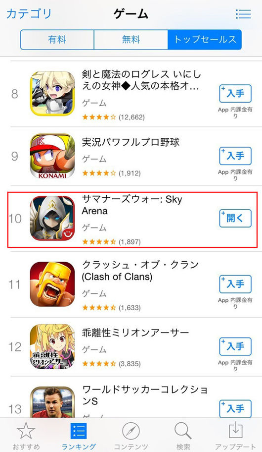 '서머너즈 워'는 7월 10일 기준 글로벌 주요 모바일 게임 시장인 미국과 일본의 애플 앱스토어 게임 매출 순위에서 각각 7위와 10위에 오르며, 국내 기업 서비스 게임으로는 최고의 글로벌 성과를 올리고 있다.