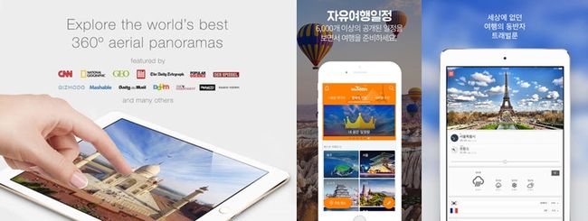 'AirPano Travel Book'을 활용하면 방문 예정지의 풍경을 항공파노라마 사진으로 보다 세밀하게 살펴볼 수 있다. 전세계 유명한 휴양지와 유적지, 도시 등을 고해상도 360도 항공 파노라마 사진으로 감상할 수 있는 앱이다. 다른 일반적인 사진들과 다르게 사진을 감상하는 사람이 원하는대로 사진을 회전시킬 수 있고, 풍경의 시야를 바꾸거나 특정 사물을 더 자세히 줌해서 볼 수도 있다. iOS 전용.