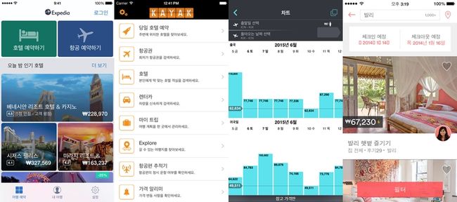 'KAYAK'은 수백 개의 여행 관련 사이트를 비교해 자신에게 가장 알맞는 호텔, 비행, 렌트카 관련 딜을 찾아주고 예약까지 도와주는 앱이다. 자신이 탄 비행기가 어디쯤 가고 있는지 현황도 체크해 볼 수 있다.