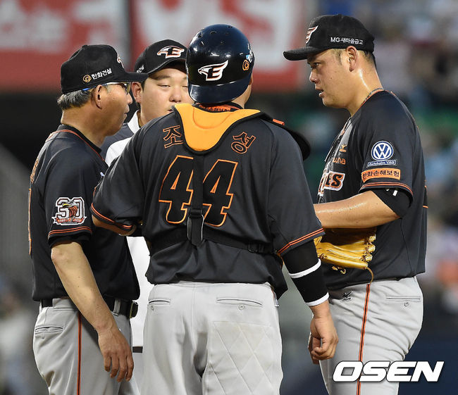 한화 이글스 우투수 송창식이 5회말 구위가 급격히 하락하며 상대에 리드를 빼앗긴 채 투구를 마쳤다.