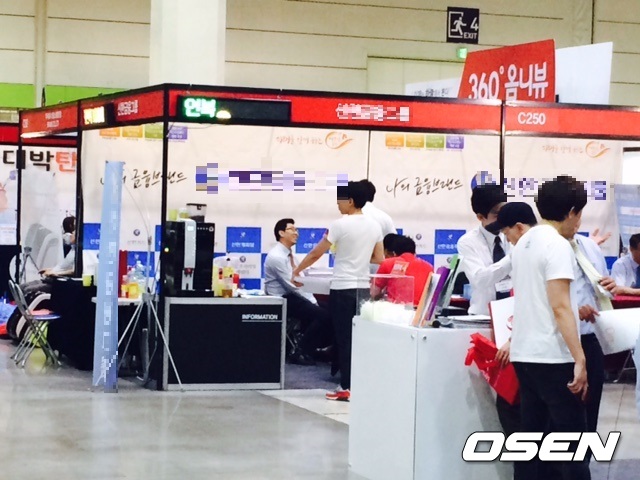 저축보험 등 금융상품을 파는 금융업체 부스도 2곳이나 있었다. 서너명의 영업사원은 ‘공짜 커피’를 외치며 그 어떤 부스의 직원들보다 가장 적극적으로 판촉에 열중하고 있었다.