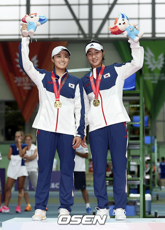 한나래(23, 인천광역시청)-이소라(21, 농협테니스단) 조는 11일 오후 염주전천후코트에서 벌어진 2015 광주 유니버시아드 테니스 여자복식 결승전에서 대만의 후치에유-이야수안 조를 세트스코어 2-0(6-4, 6-4)으로 누르고 금메달을 목에 걸었다.