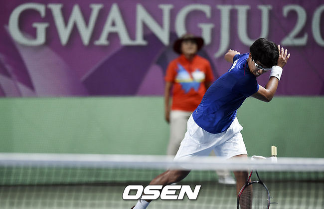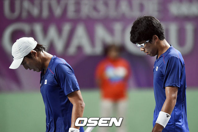 정현(19, 상지대)-남지성(22, 부산테니스협회)조는 11일 오후 광주광역시 염주전천후실내코트에서 개최된 2015 광주 유니버시아드 테니스 남자복식 결승전에서 영국의 조셉 샐리스버리-대런 월시 조에게 세트스코어 1-2(6-2, 3-6, 8-10)로 패해 은메달에 머물렀다. 최다 3관왕에 도전했던 정현은 첫 번째 금메달을 놓치고 말았다.