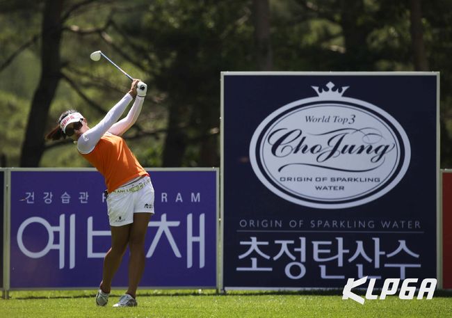고진영(20, 넵스)이 한 단계 치고 올라 KLPGA 초정탄산수 용평리조트 오픈 2라운드에서 단독 선두로 나섰다.