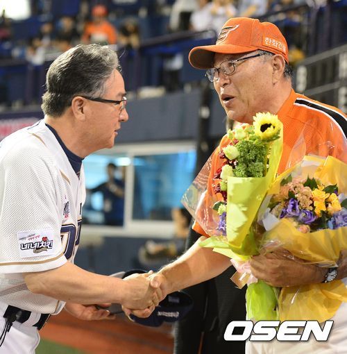 한편 김응룡 감독은 1983~2000년 해태, 2001~2004년 삼성, 2013~2014년 한화에서 24시즌 통산 2935경기 1567승1300패68무 승률 5할4푼7리를 기록했다. 역대 최다경기·최다승·최다우승의 주인공이다. 포스트시즌 통산 92경기 55승32패5무 승률 6할1푼1리를 기록했고, 한국시리즈에서는 44승19패5무 승률 6할9푼8리로 압도적인 성적을 냈다. 김경문 감독은 "우리나라 야구에서 영원히 깨지지 않을 기록"이라고 내다봤다.