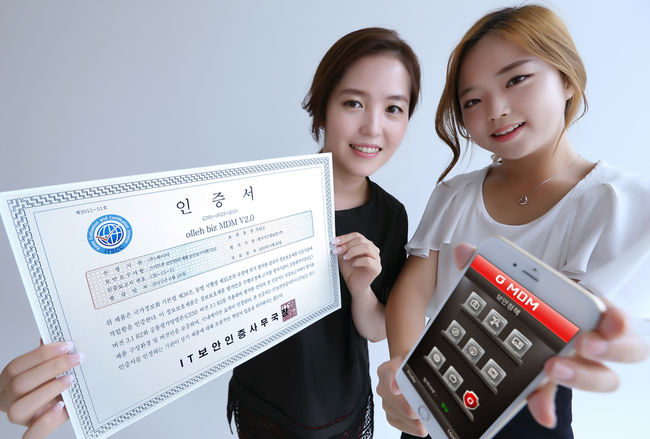 KT는 'olleh biz MDM V2.0'으로 CC 인증을 받았다. 지난 2014년 6월에 출시한 'olleh biz MDM'은 정보유출, 해킹 등 외부공격으로부터 기업의 모바일 단말을 안전하게 관리하는 클라우드 기반 보안 솔루션이다. 안전한 모바일 업무환경을 위한 ▲단말 및 사용자 관리 ▲업무용 앱 배포 및 삭제, 악성 앱 차단 ▲단말분실·도난 관리 ▲보안정책 배포 등의 MDM(Mobile Device Management) 솔루션을 통합 제공한다.