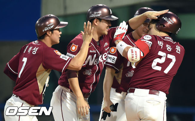 4회초 2사 만루 넥센 박동원이 만루 홈런을 때린 뒤 동료들에게 축하받고 있다.