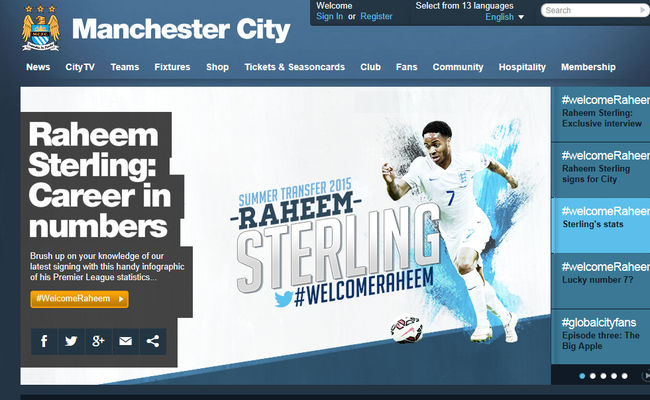 맨체스터 시티 공식 홈페이지 캡처.