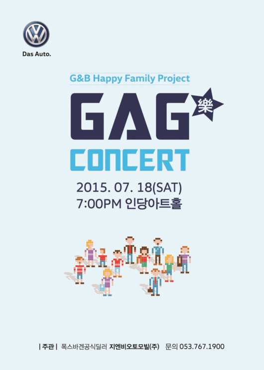 폭스바겐코리아 대구/경북 공식딜러 지엔비오토모빌(대표:이진백)은 오는 7월 18일(토) 대구보건대학 인당아트홀에서 폭스바겐 고객들을 위한 '개그樂콘서트'를 개최한다.
