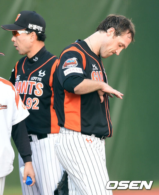롯데 자이언츠 에이스 조쉬 린드블럼이 1회 타구에 손등을 맞고 교체됐다.