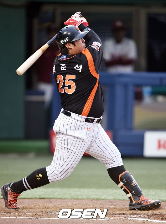 7회 롯데의 추가점도 최준석으로부터 나왔다. 1사 2루에서 이번에는 깔끔한 우전안타로 황재균을 홈으로 불러 들였다. 4타수 3안타 5타점, 올 시즌 최다 타점을 기록하면서 롯데의 12-10 승리를 이끌었다. 타선 침체로 고전하고 있는 롯데, 전반기 종료를 앞두고 최준석이 살아난 건 분명한 호재다.