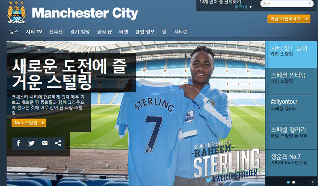 맨체스터 시티 구단 홈페이지 캡처.