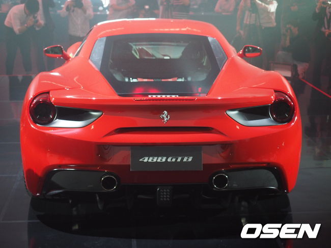 16일 페라리는 서울 서초구 반포대로 세빛섬에서 ‘페라리 488 GTB’ 공식 출시 행사를 열고 ‘488 GTB’을 국내 최초로 공개했다. 이날 행사에서 공개된 ‘페라리 488 GTB’는 로쏘 코르사 메탈리차토(Rosso Corsa Metallizzato)의 붉은색 외장에 검정과 붉은색의 테크니컬 패브릭으로 스포티한 인테리어가 적용됐다.
