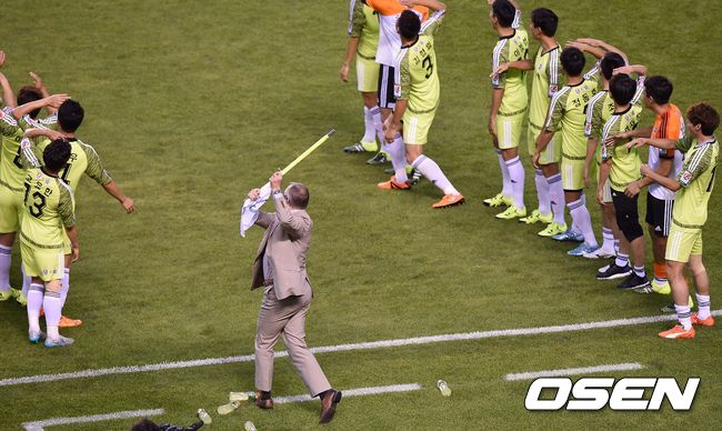 김호남은 인상적인 세리머니를 못할 것처럼 보였다. 그러나 최강희 감독 대신 슈틸리케 감독과 하이 파이브를 펼쳤다.