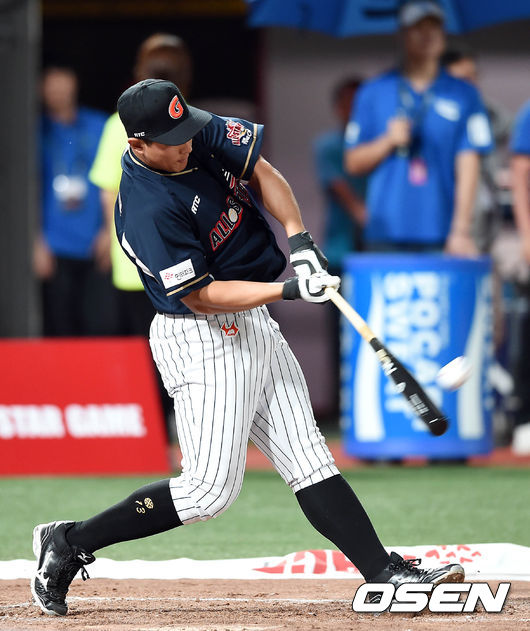 황재균은 17일 수원kt위즈파크에서 열린 '2015 타이어뱅크 KBO' 올스타전 식전 행사인 '인터파크 홈런레이스' 드림팀 예선전에서 10홈런을 기록해 1위로 결승전에 진출했다.
