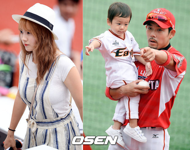 올스타로 뽑힌 이용규가 아들과 아내 유하나와 함께 참석했다.