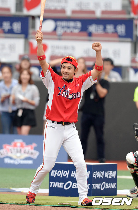 이용규는 18일 수원 케이티 위즈파크에서 열린 '2015 타이어뱅크 KBO 리그 올스타전' 번트왕 레이스 결승전에서 김상수를 꺾고 우승을 거머쥐었다.