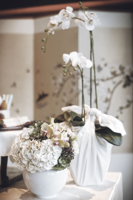 순수함을 상징하는 백색과 은은한 분홍색, 옥색이 어우러져 우아하고 단아하게 꾸며진 예식 공간에는 전통 혼례상을 비롯해 부부의 화목한 해로를 기원하는 소나무 원앙세트와 전통화기, 방짜 유기 등을 올린 소례상과 화려한 대형 플라워 오브제를 더해 현대적 감각을 가미한다. 또한, 한식을 중심으로 한 오뜨 퀴진 스타일의 웨딩메뉴와 양식코스, 맞춤식 웨딩 케이크, 프리미엄 주류 등을 취향과 예산에 맞게 선택할 수 있다. 또한, 시간적 제한이 적어 여유롭게 즐길 수 있으며, 웨딩 리셉션과 본식, 애프터 웨딩 파티 등 다양한 이벤트 구성도 가능하다.