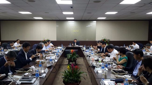 한국공항공사 김석기 사장과 간부직원들이 김포공항에 소재한 본사 회의실에서 메르스 영향 이후 항공수요 활성화를 위한 ‘도시락 회의’를 진행하고 있다. / 한국공항공사 제공