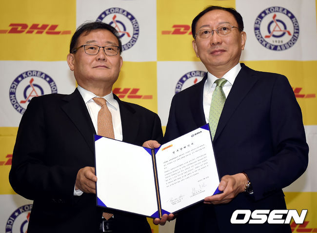 대한아이스하키협회가 22일 오전 서울 마포구 베스트 웨스턴프리미어 서울 가든호텔 그랜드볼룸서 글로벌 국제특송기업인 DHL 코리아와 공식 물류 파트너 협약식을 체결했다.