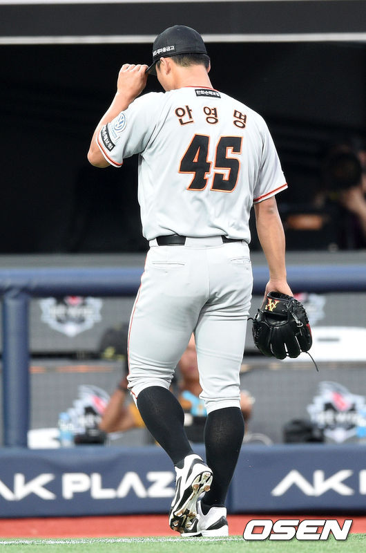 그러나 여기서 니시모토 다카시 투수코치가 마운드에 올라왔고, 안영명이 무언가를 한참 동안 무언가 이야기를 나눴다. 그 이후 갑작스럽게 투수 교체가 이뤄졌다. 총 투구수 36개로 스트라이크 21개, 볼 15개. 지난달 16일 대전 SK전 시즌 8승 수확 후 이날까지 6경기 연속 승리를 추가하지 못하고며 아쉬움을 삼키고 있다.