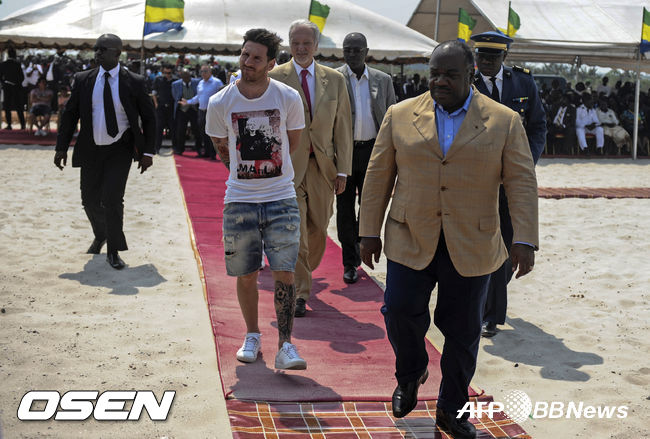 메시는 대통령과 함께 2017년 아프리카 네이션스컵이 개최되는 스타디움에 기념석을 놓는 등 공식일정을 마쳤다. 메시는 갑자기 잡힌 대통령과의 만남에 제대로 대응하지 못한 것으로 전해졌다. / jasonseo34@osen.co.kr