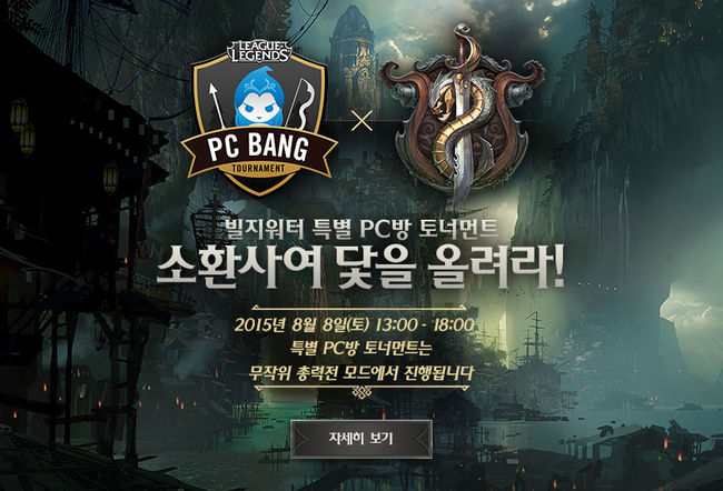 ‘리그 오브 레전드(이하 LoL)’의 개발 및 유통사인 라이엇 게임즈는 24일 ‘2015 빌지워터 특별 PC방 토너먼트’를 진행한다고 밝혔다.