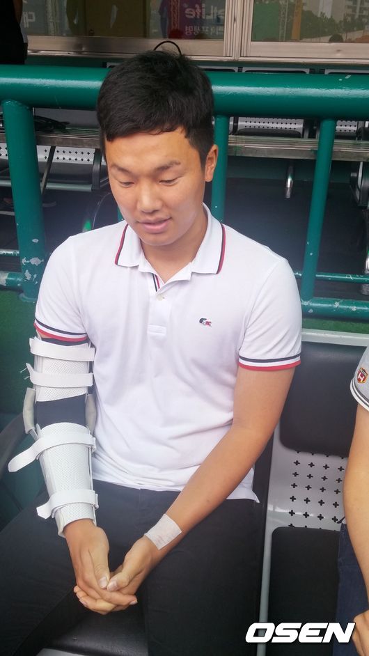 24일 우천 연기된 목동구장에서 만난 신동훈은 얼떨떨한 표정이었다. 신동훈은 지난 9월 오른 팔꿈치 인대접합 수술을 받은 뒤 13일 뼛조각 제거 수술까지 받아 오른팔에 깁스를 한 상태였다.