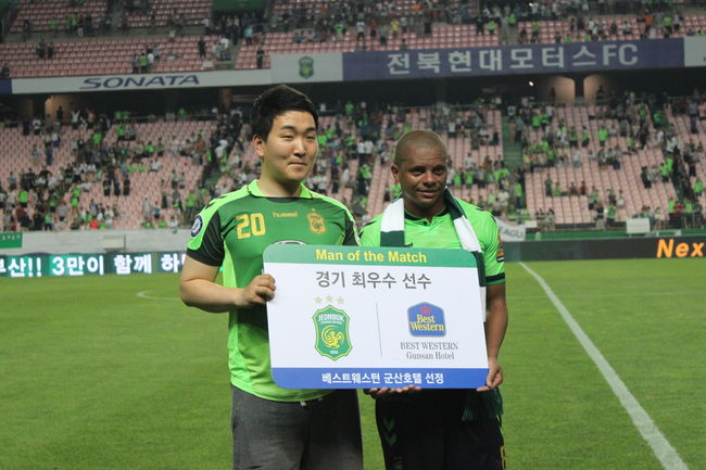 루이스(35, 전북 현대)가 베스트웨스턴 군산호텔이 선정한 최우수 선수(Man of The Match)가 됐다.