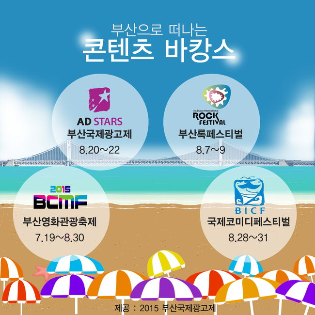 - 부산국제광고제, 부산록페스티벌 등 오감이 만족되는 콘텐츠 바캉스