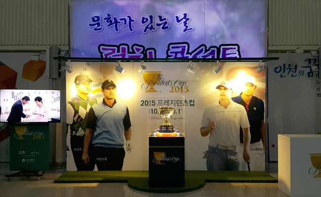 2015 프레지던츠컵을 두 달 여 앞둔 29일 하루 동안 트로피는 인천광역시청 본관 1층 로비에 전시 돼 인천 시민들에게 선보이게 되며, 30일부터 8월 3일까지 인천국제공항 3층 출국장 F카운터 옆에 전시된다.