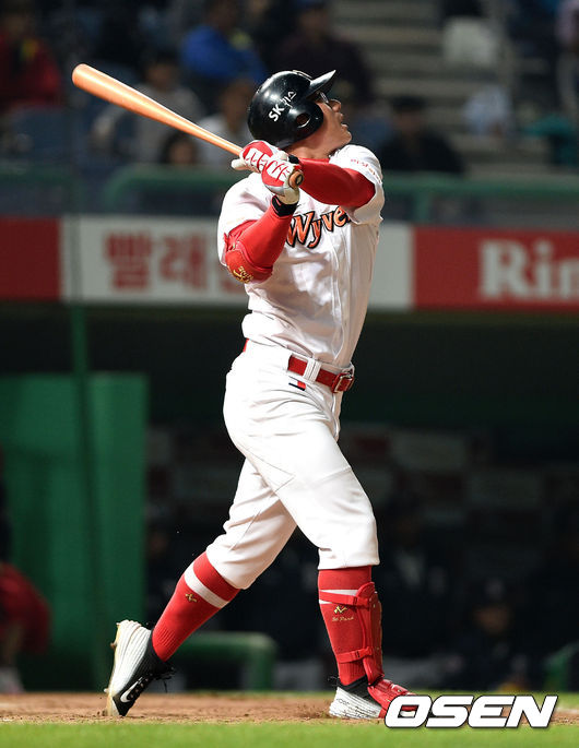 SK는 박정권의 홈런으로 선취점을 얻어 1-0으로 앞서 나가고 있다. /skullboy@osen.co.kr
