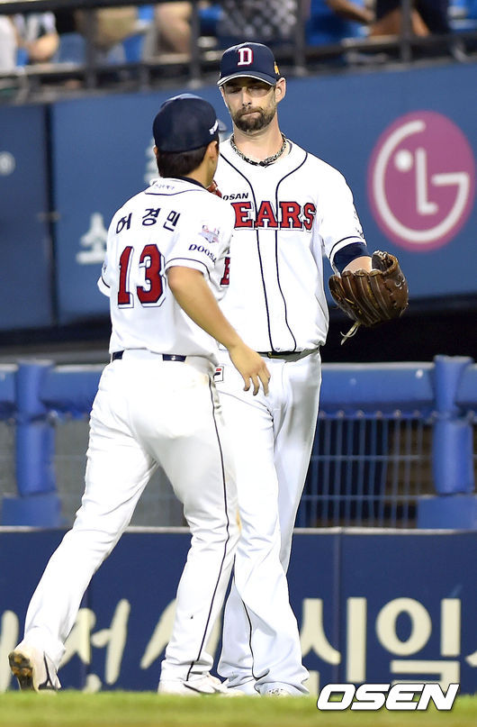 니퍼트는 9회 박해민을 좌익수 뜬공으로 유도하고 나바로에게 좌익선상 2루타를 얻어 맞았다. 대주자 백상원 투입. 곧이어 최형우의 중전 안타 때 2루 주자 백상원이 홈을 파고 들었다. 니퍼트는 이재우에게 마운드를 넘겼다. /what@osen.co.kr