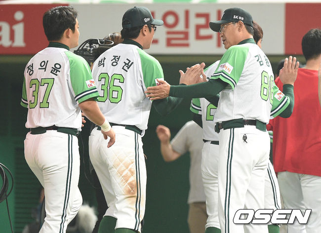 SK는 31일 인천SK행복드림구장에서 열린 LG와의 경기에서 선발 박종훈의 7이닝 무실점 역투 등 마운드의 힘을 앞세워 3-1로 이기고 오래간만에 승리를 신고했다. 다시 5할 승률로 복귀한 SK(44승44패2무)는 5위 한화 추격에 다시 시동을 걸었다. 반면 LG(41승52패1무)는 타격이 힘을 내지 못하며 연승에 실패했다.