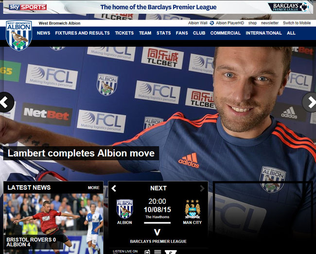웨스트 브로미치 알비온 공식 홈페이지 캡처.