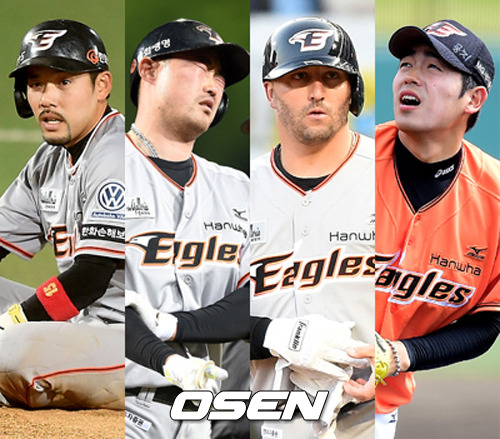 올해 개막 엔트리에 포함된 선수 중 지금까지 한 번도 빠짐없이 자리를 지키고 있는 선수는 내야수 김태균·권용관, 투수 권혁·박정진·배영수 5명밖에 없다. 역대급 부상병동을 안고도 5위 자리를 유지하고 있는 것이 신기하다. /waw@osen.co.kr
