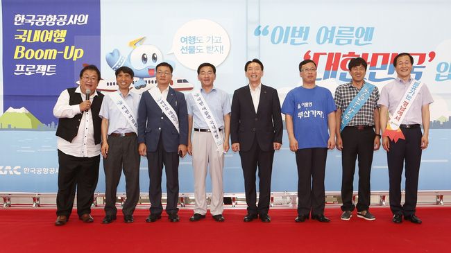 한국공항공사(사장 김석기)는 3일 김포공항 국내선 3층에서, 전국 6개 시·도 광역지자체와 공동으로 메르스로 인해 위축된 국내여행 수요를 촉진하기 위한 이벤트 “이번에는 대한민국입니다”를 개최했다.