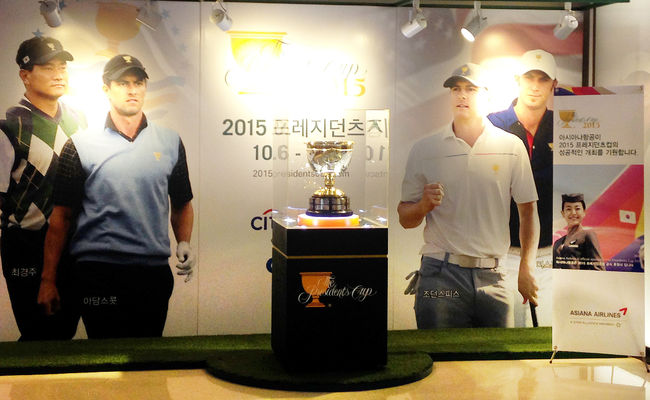 아시아나항공(대표 김수천)이 4일부터 오는 16일까지 인천국제공항 아시아나항공 비즈니스 라운지에서 '2015 프레지던츠컵 트로피 투어'를 진행한다.