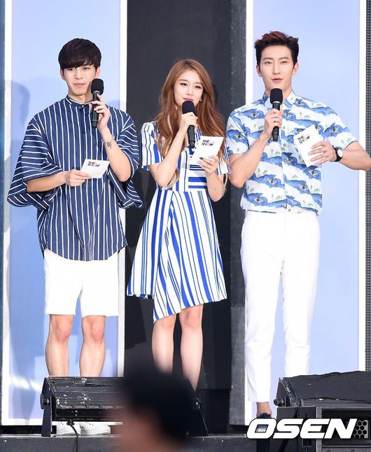 빅스 홍빈, 티아라 지연, 슈주 조미가 진행을 하고 있다.