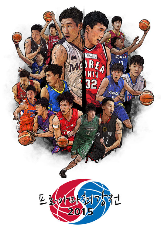 한편, KBL은 2015 프로-아마 최강전 대회 포스터를 확정했다. 이번 대회 포스터는 농구 특유의 역동감을 부각시키기 위해 대회에 참가하는 프로 10개 구단과 대학 5개팀 및 신협 상무 등 총 16개팀의 대표선수를 일러스트 형식으로 제작했으며 프로와 아마가 맞붙는 대결구도로 구성했다./ 10bird@osen.co.kr