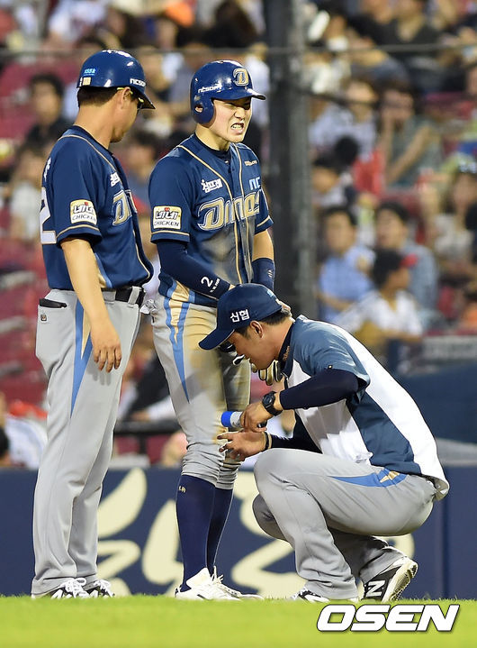 NC 구단 관계자는 “박민우 선수가 우측 종아리 상단에 연속을 공을 맞았다. 큰 부상은 아니지만 선수보호차원에서 교체했다”고 전했다./ drjose7@osen.co.kr