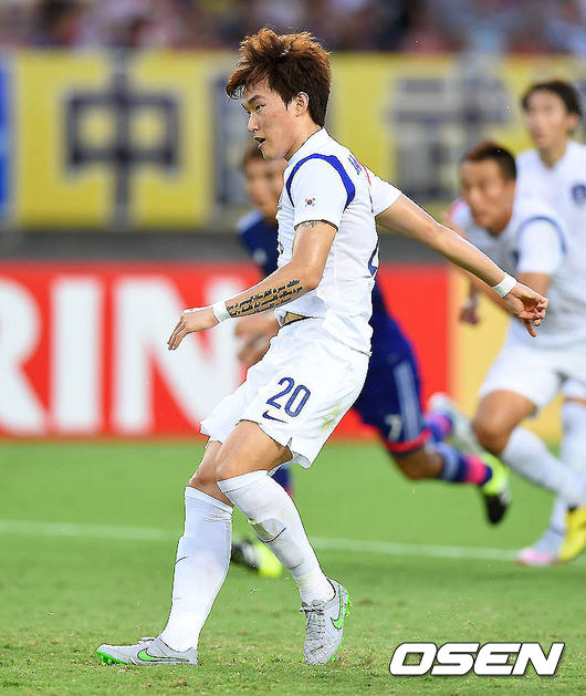[OSEN=우한(중국),박준형] 5일 오후(한국시간) 우한 스포츠센터 스타디움서 열린 '2015 동아시아축구연맹(EAFF) 동아시안컵 한국과 일본의 경기,전반 일본 선수의 핸드볼 파울로 얻은 페널티킥을 장현수가 가볍게 성공시키고 있다.
