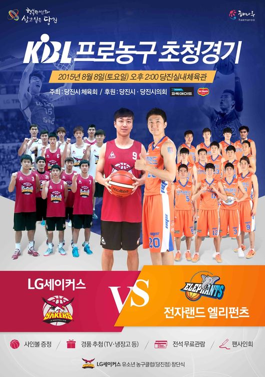 프로농구 창원 LG세이커스(단장 김완태)는 인천전자랜드와 함께 8일(토) 15시 충청남도 당진시 실내체육관 에서 '2015 당진 해나루 초청 프로농구 친선경기'를 실시한다.